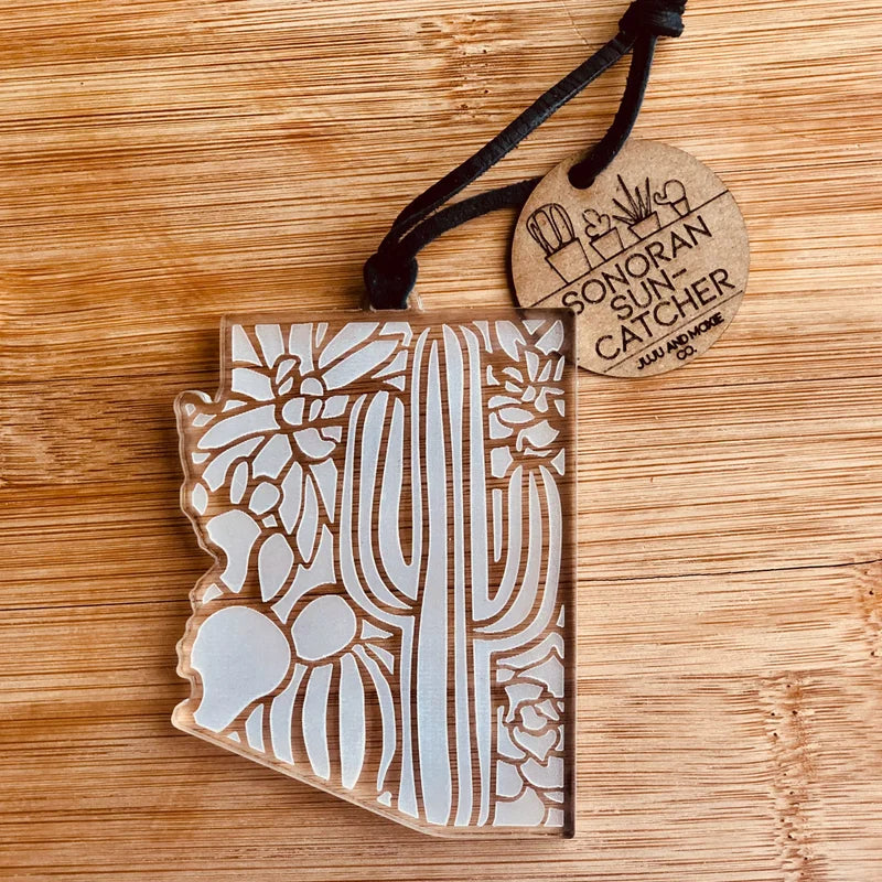 Sonoran Suncatchers are made of translucent bright acrylic and etched with a motif of succulents and cacti. They catch the sunshine beautifully, which is always in fashion living in the southwest. These are super popular as gifts to bring back home when visiting Arizona, and the color palette they come in makes it difficult to choose just one.
