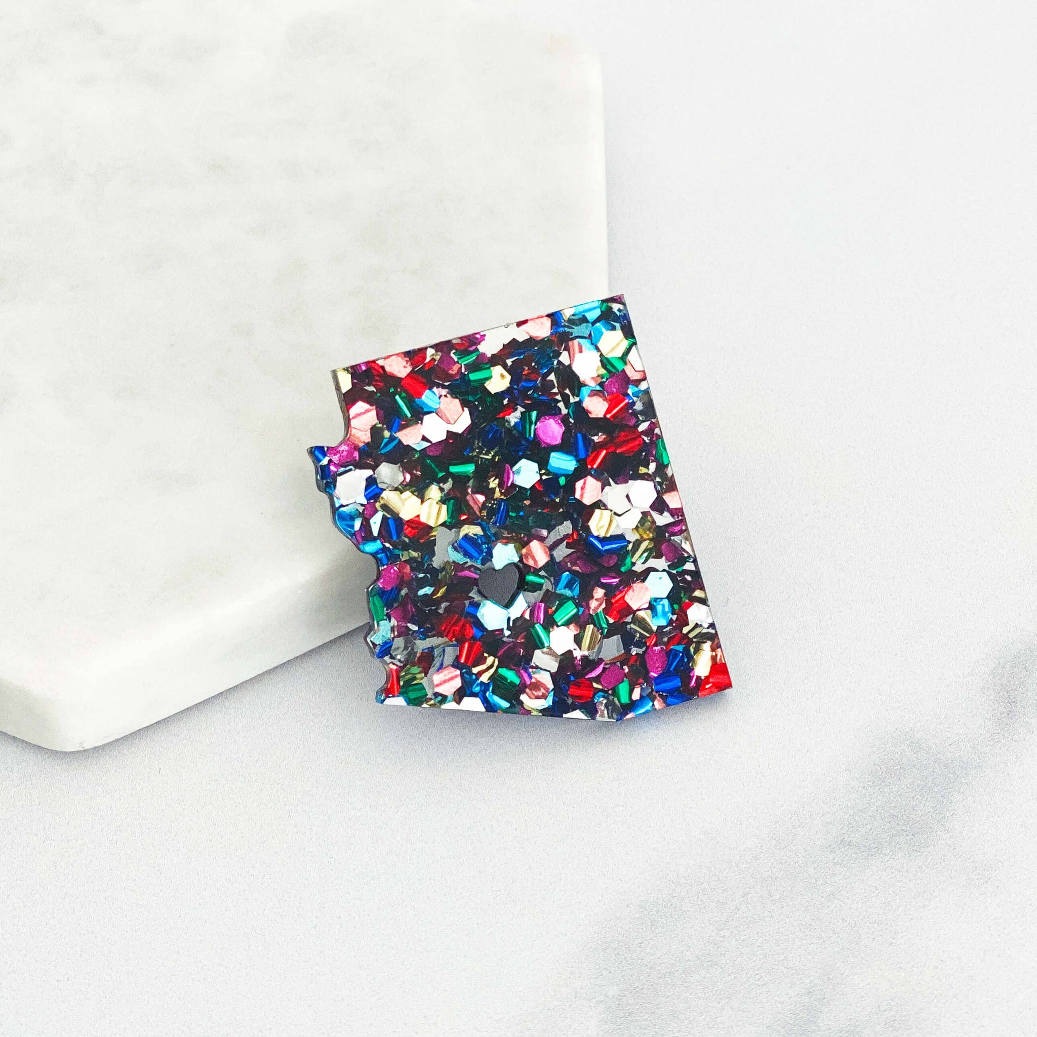 Add some Arizona love to your fridge with this Arizona-shaped magnet made from shimmery acrylic. DETAILS: * Size: 1.25" wide x 1.5" high * Made from 1/8" acrylic * Handle with care; Clean with a damp cloth