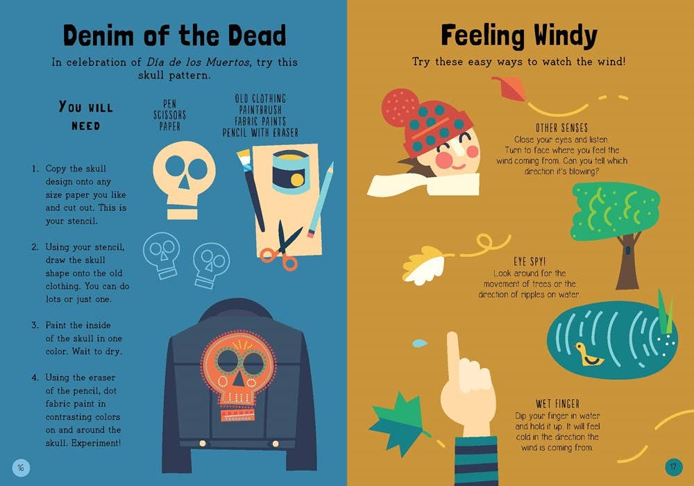 Write, draw, think, listen, and dare with the Adventure Journal: 50 Things to Try in the Fall. Begin on any page and do as many activities as you can fit in a day, in any order you’d like. Activities are color coded to help you choose where to start: try pink for “Explore,” yellow for “Dare,” blue for “Make,” and more! Make your own birdfeed; draw your local wildlife; carve faces into squash; and try a “daily dare.”