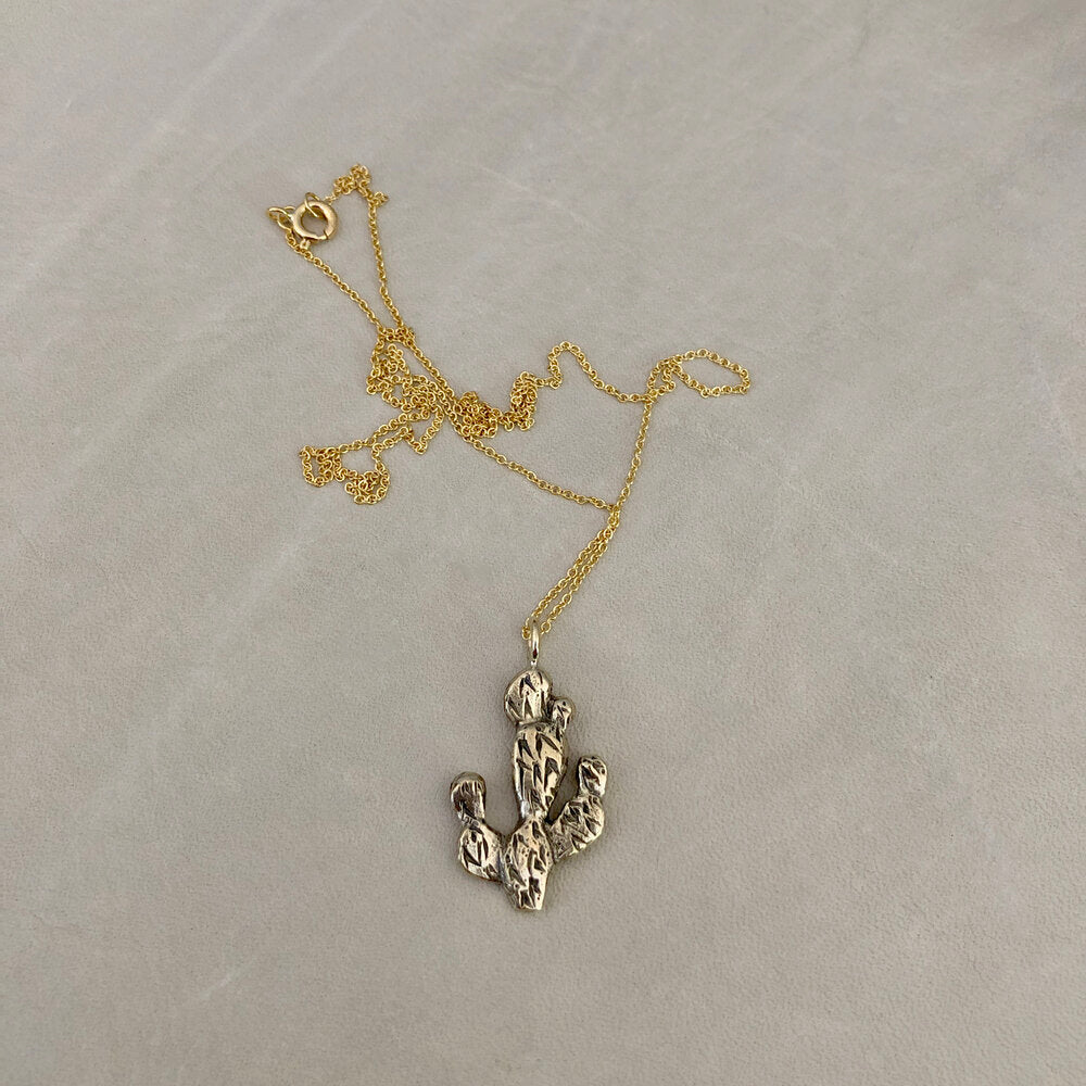 One prickly pear cactus necklace. Hand carved, and then cast in the Heliotrope studio.