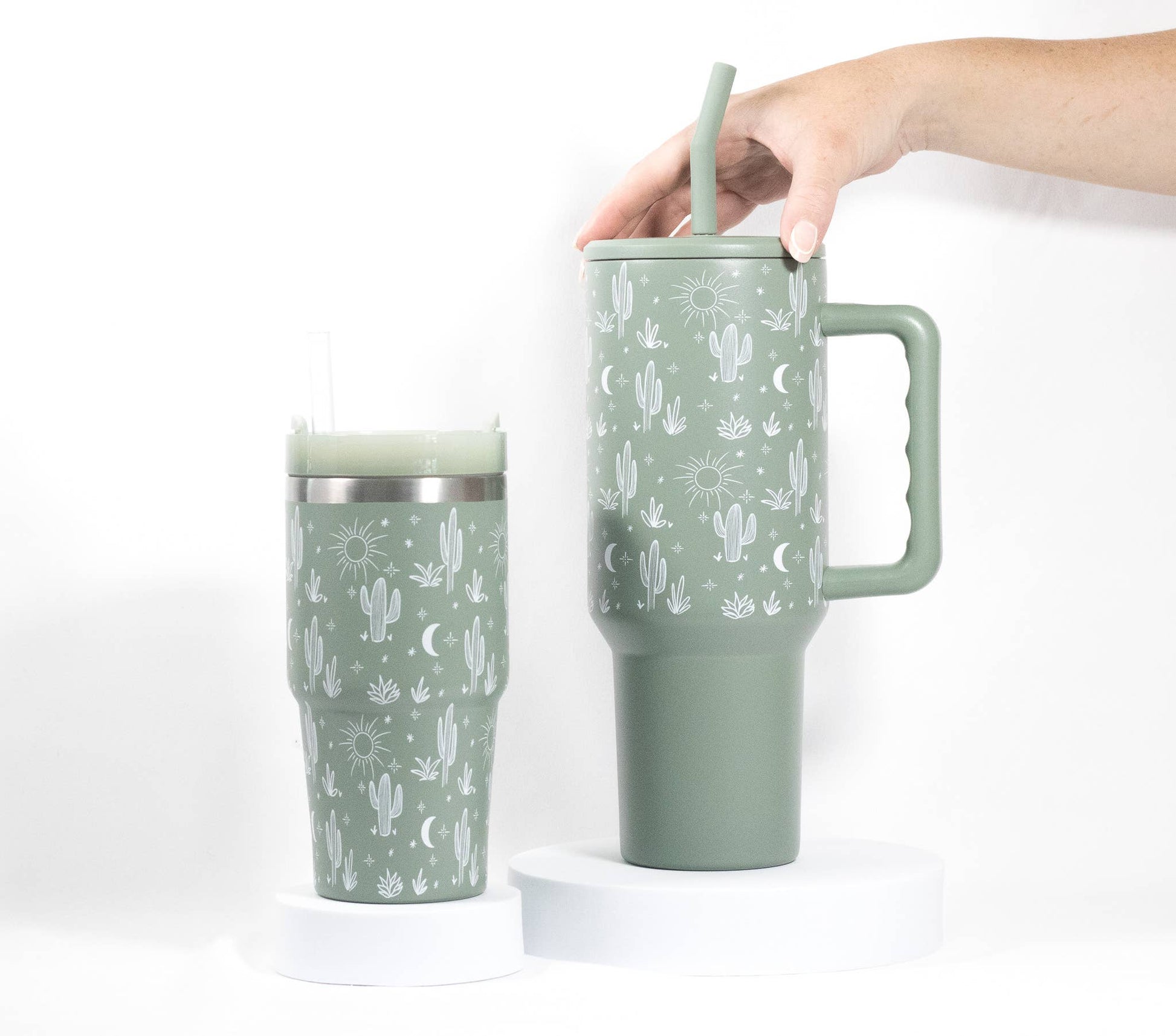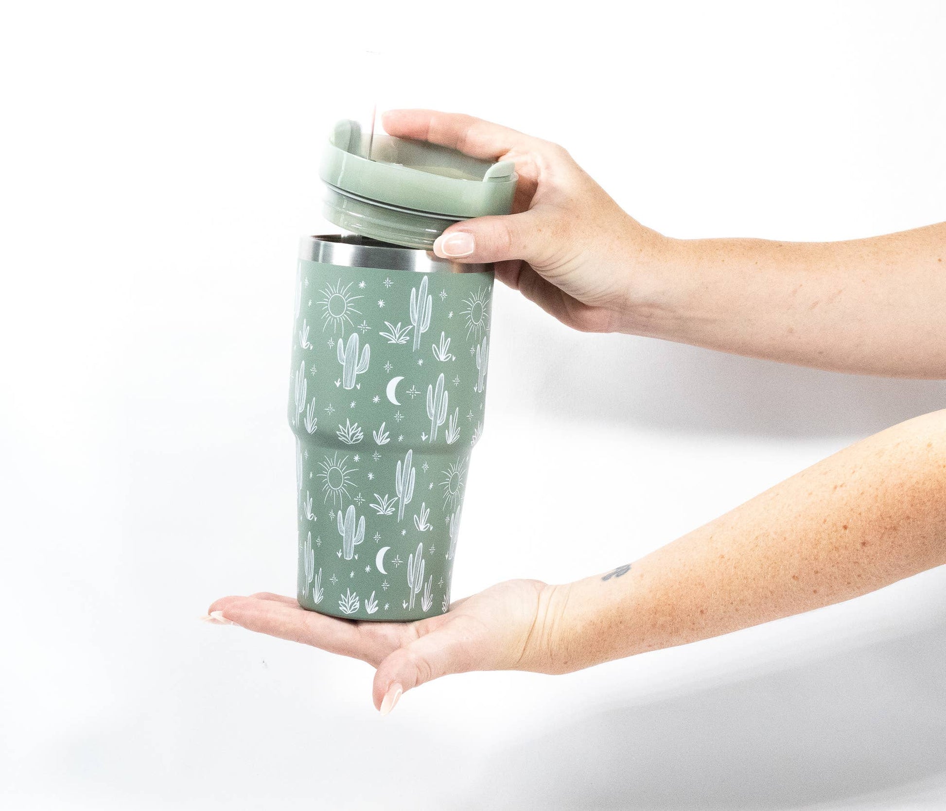 20oz Tumbler, Cactus Print Mini Tumbler Sage Green