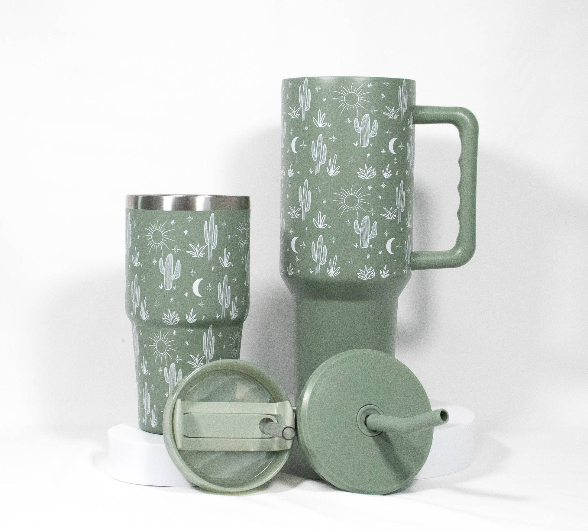 40oz Tumbler, Cactus Print Leak Proof Sip-and-Go Sage Green