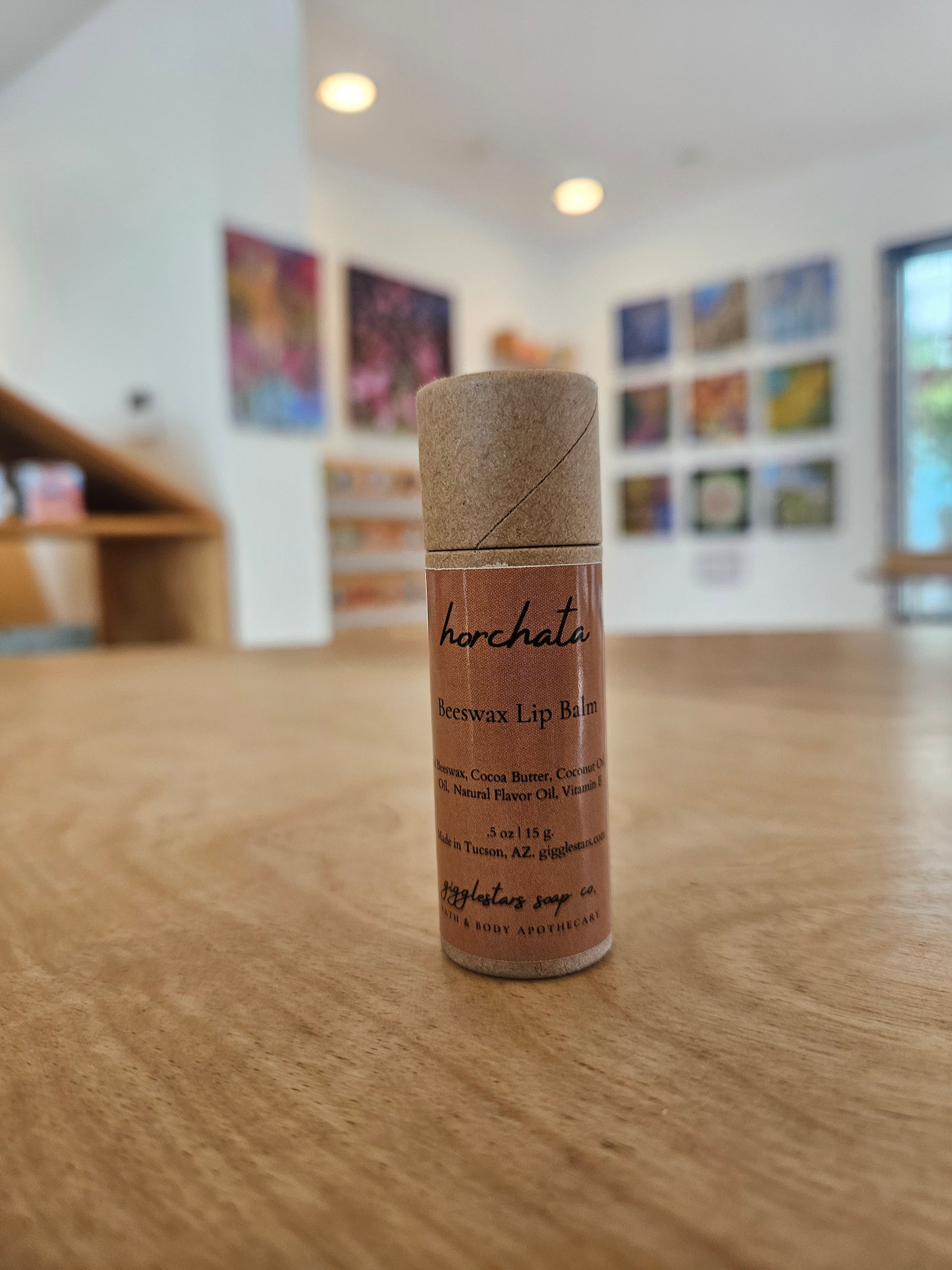 There lip balms are a dreamy blend of Beeswax, oils like Avocado Oil, Coconut Oil or Prickly Pear Seed Oil, Vitamin E, Cocoa Butter and Essential Oils.