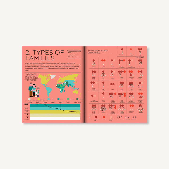Me and the World is a colorful, eye-popping universe of infographics about global communities.